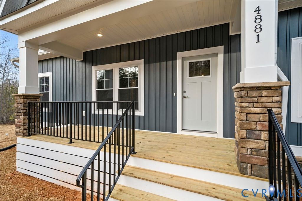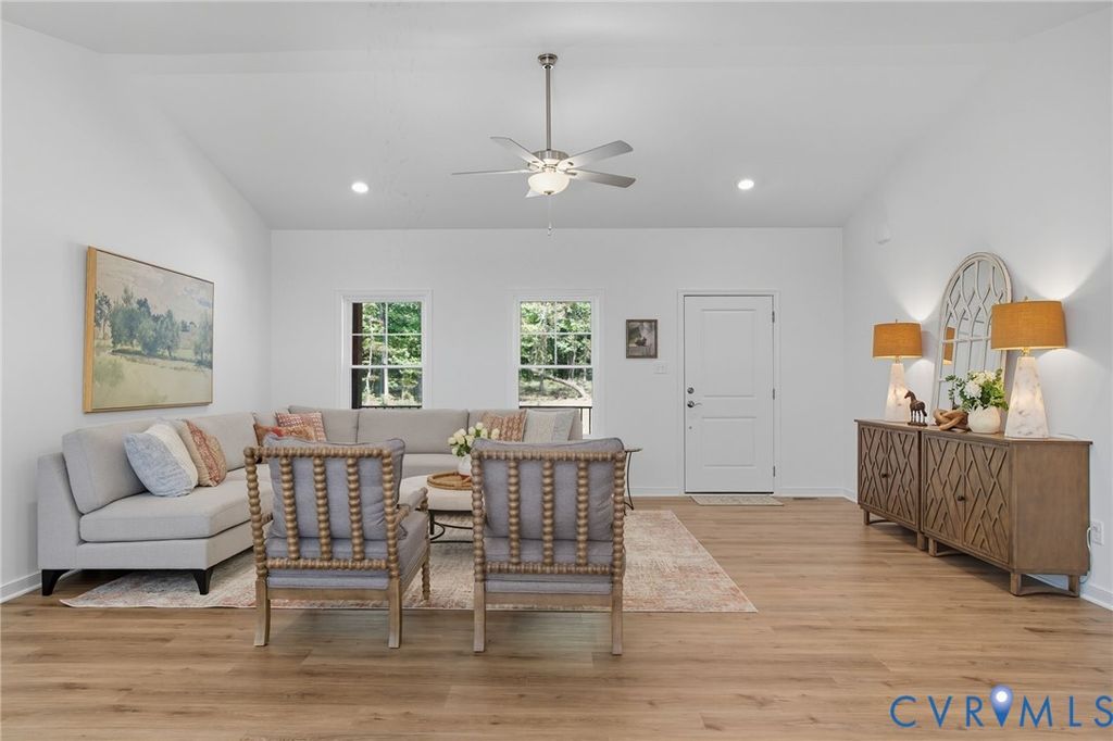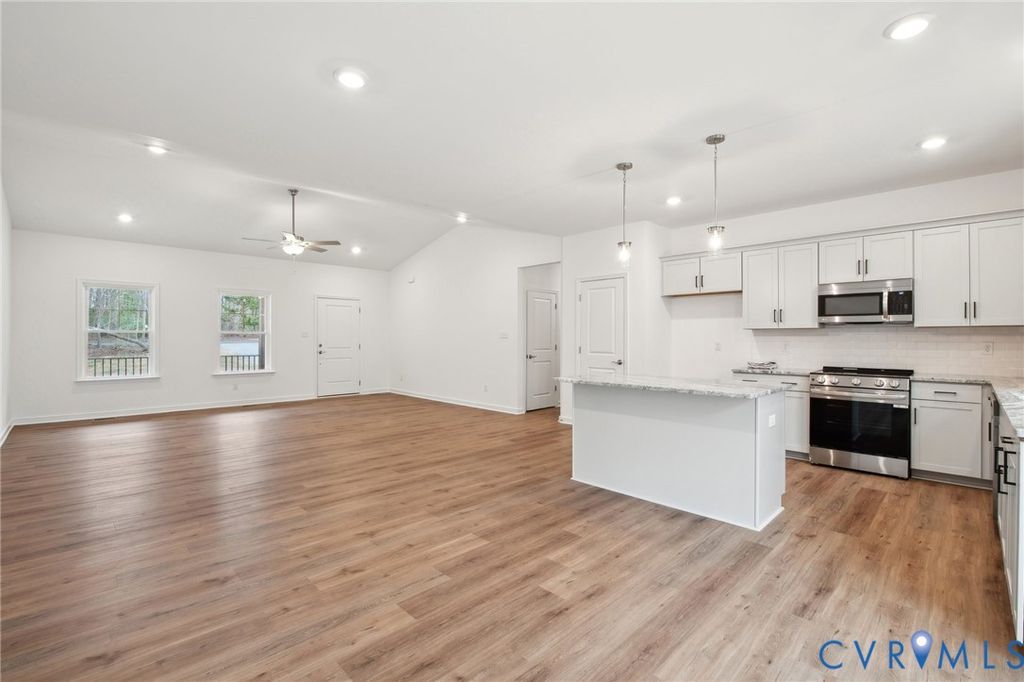 THIS IS A QUICKER MOVE HOME. THERE IS STILL TIME TO CHOOSE YOUR DESIGN. Expected delivery this fall. Contact Sales Agent for more details This Mallory floor plan is a charming and versatile 1826 sqft home with a welcoming covered front porch (18'6"X6') and a 1.54 acre lot. As you step inside, the home opens up to an expansive living area with vaulted ceilings. The family room, dinette, and kitchen flow together seamlessly. The kitchen is both functional and stylish, offering Stainless Steel appliances, ample counter space including an island, and a pantry for your storage needs. Adjacent to the kitchen, the dinette features sliding glass doors leading to the 12 X 12 rear deck. Near the family room, you'll find a hall that leads to the second and third bedrooms, both spacious and inviting and separated by a full bathroom. On the opposite side of the home, the primary suite offers a private retreat with a generously sized bedroom with a tray ceiling and large walk-in closet. The ensuite bathroom includes a walk-in shower, dual vanity, and private water closet. The suite also features a large walk-in closet providing plenty of storage space. Conveniently located near the primary suite, the laundry room doubles as a mudroom. This area also provides access to the 2-car garage. The Mallory is a home that blends comfort, style, and versatility, offering everything you need for today's modern living. With its spacious, open layout, first floor living, customizable options, and thoughtful design, it's the perfect space for anyone. The home is to be built in Compass Cove, where luxury living meets water access to the beauty of Lake Anna. Whether this is your forever home or an investment opportunity, Compass Cove is an exciting new neighborhood for both. Photos used for advertising purposes and not of the actual house and may include upgrades not part of the advertised price.