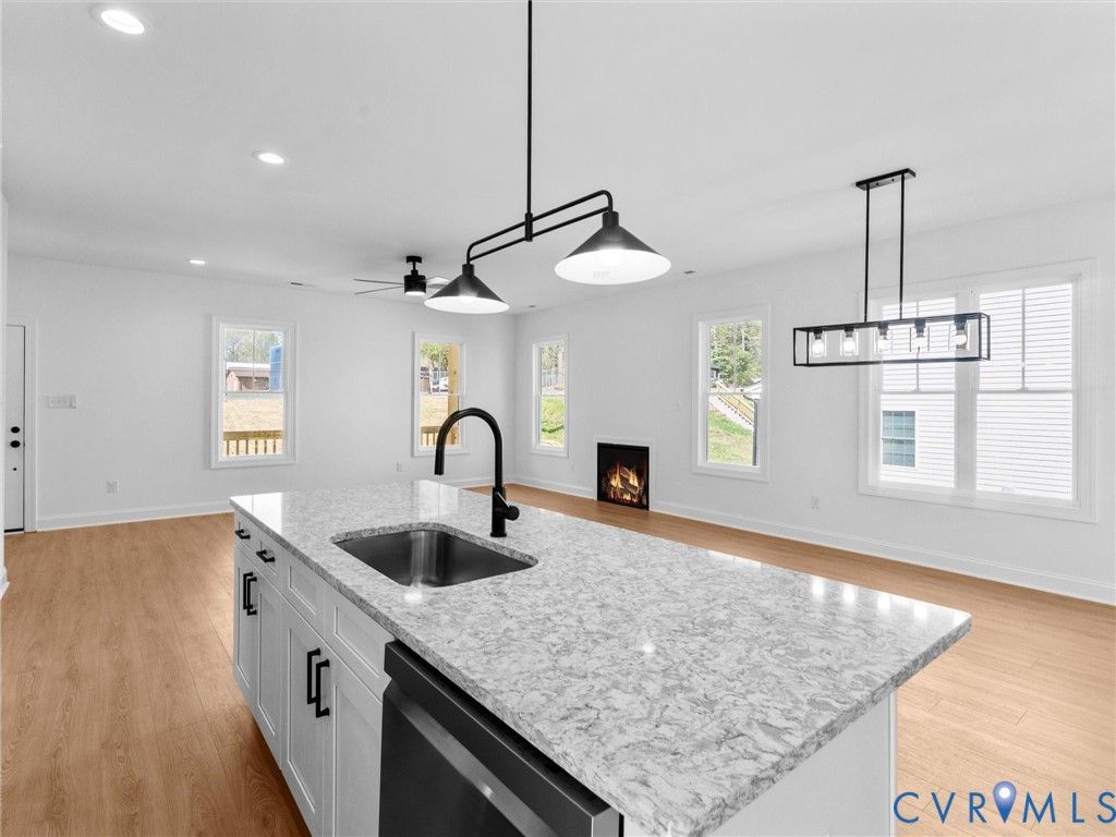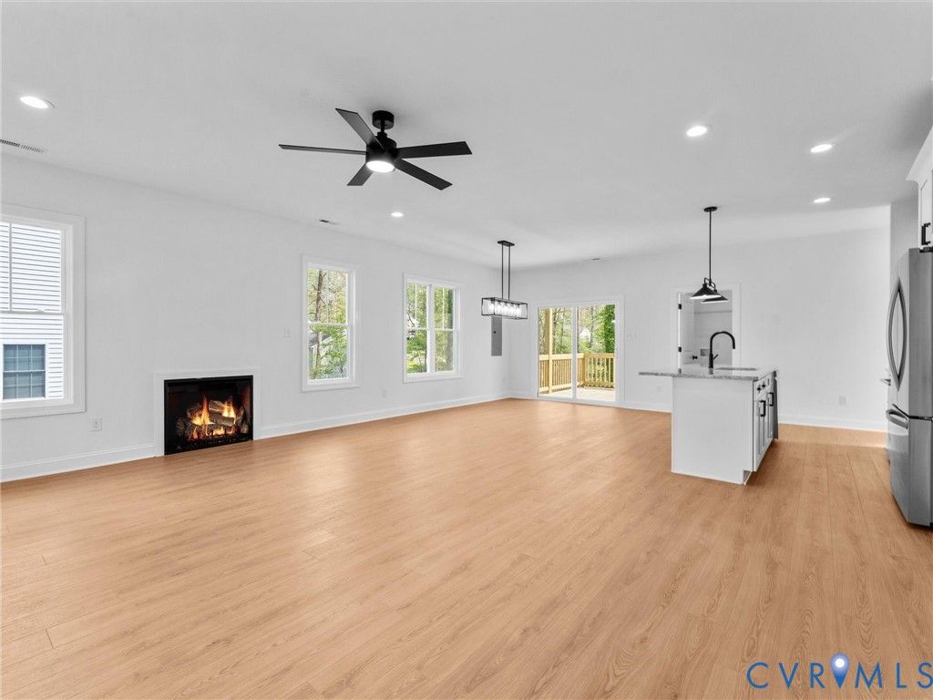 Welcome to this beautifully crafted, move in ready new construction home located in the Woodhaven Shores lake community in New Kent County. Offering 1,726 square feet of thoughtfully designed living space, this two-story home features 3 bedrooms, 2.5 bathrooms, and a modern open-concept layout ideal for both everyday living and entertaining. The main level includes a spacious living area with a gas fireplace, creating a warm and inviting focal point, and flows seamlessly into the kitchen, complete with granite countertops, a large pantry, ample cabinetry, and quality finishes throughout. Durable and stylish tile finishes can be found in the bathrooms, adding both function and design appeal. Upstairs, the primary suite offers a comfortable retreat featuring a double vanity, a large tiled walk-in shower, and an oversized walk-in closet. A private second-story balcony extends off the primary bedroom, providing a unique outdoor space to relax and unwind. Additional features include a paved driveway, covered front porch, and a rear deck ideal for entertaining. Located just a short walk to the water, this home offers easy access to the lake lifestyle Woodhaven Shores is known for, including a community beach and pavilion. Conveniently located in New Kent, this move-in ready house is ready to become a home.