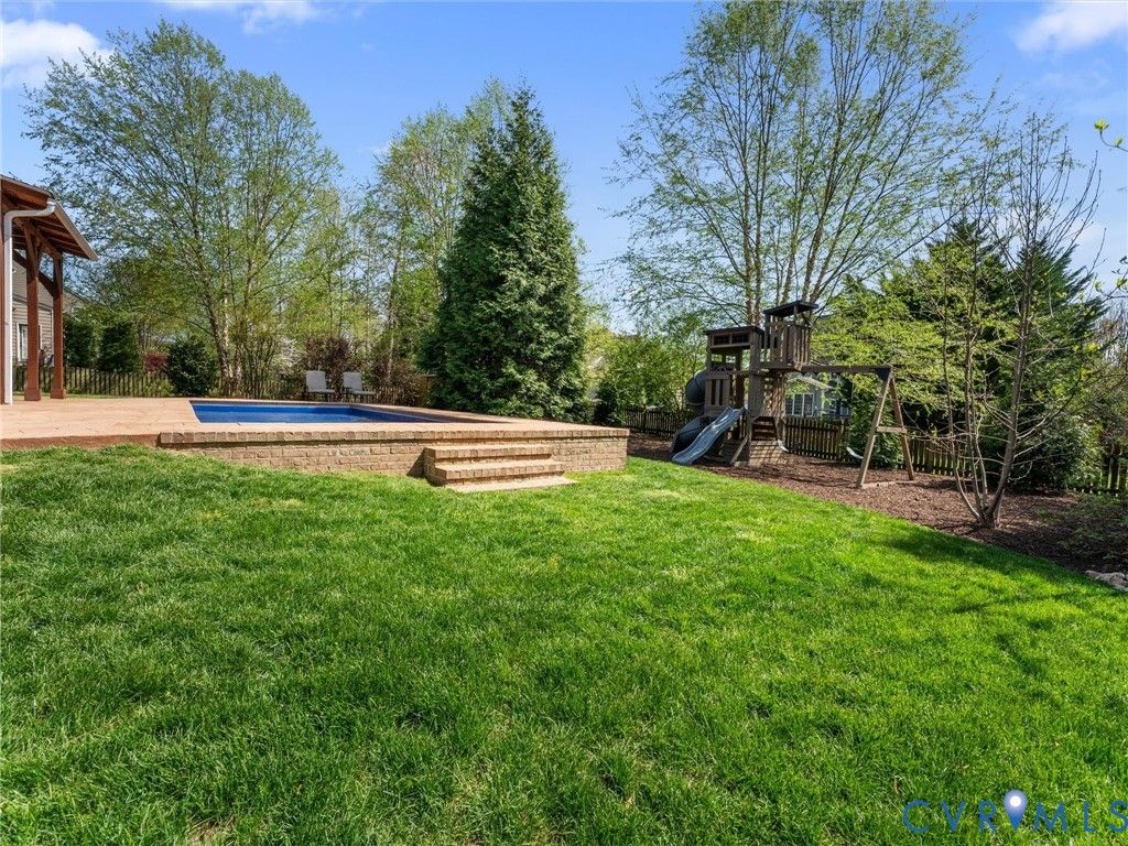 Welcome to this beautifully maintained brick transitional in the highly sought-after Charter Colony community! Offering 4 bedrooms, 2.5 baths, and a bright, open floor plan, this home is filled with natural light and thoughtful updates throughout. Step into a stunning two-story foyer that flows into a formal dining room with tray ceiling, wainscoting, and chandelier, along with a flexible living space perfect for a home office or playroom. The spacious family room features recessed lighting and opens seamlessly to the kitchen complete with hardwood floors, granite countertops, gas cooking, double ovens, pantry, and a breakfast bar overlooking the morning room with vaulted ceilings and abundant windows. Upstairs, the primary suite offers a true retreat with vaulted ceilings, dual walk-in closets, and a spa-like bath featuring a soaking tub, tiled shower, and double vanities. Additional bedrooms are generously sized, and a walk-up attic provides excellent storage or future expansion potential. Step outside and enjoy your private backyard oasis, now featuring a newly added pool, perfect for entertaining, relaxing, and making the most of warm Virginia days. The backyard also includes a patio and plenty of space to unwind. Additional highlights include a two-car garage, irrigation system, and access to Charter Colony's incredible amenities including pool, clubhouse, playgrounds, and more. Conveniently located near top-rated schools, shopping, and dining. This one truly checks all the boxes, don't miss it!