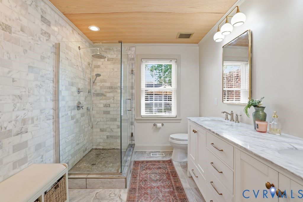 Welcome to this beautifully renovated home just moments from Bryan Park, where timeless charm meets modern design. From the moment you step inside, you're greeted by rich hardwood floors that flow throughout and a warm, inviting layout designed for everyday living and effortless entertaining. The cozy family room centers around a classic brick wood-burning fireplace, creating the perfect space to unwind. The kitchen has been thoughtfully updated with quartz countertops, a stylish tile backsplash, and a spacious island that serves as the heart of the home. The main-level primary suite offers a private retreat with a double vanity, walk-in tiled shower, future soaking tub hookup, and a generous walk-in closet. A first-floor laundry area and additional storage space add convenience to daily living. Upstairs, you'll find two well-appointed bedrooms with great storage and a Jack-and-Jill bath, offering both function and flexibility. Step outside to your own outdoor oasis"”a gorgeous patio with plenty of room to entertain, relax, or host gatherings"”plus a large shed providing excellent additional storage. All of this in a prime location near Bryan Park, combining comfort, style, and convenience in one exceptional home.