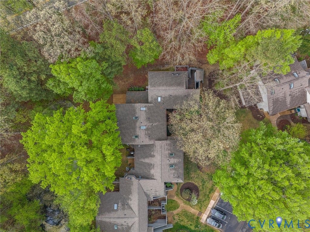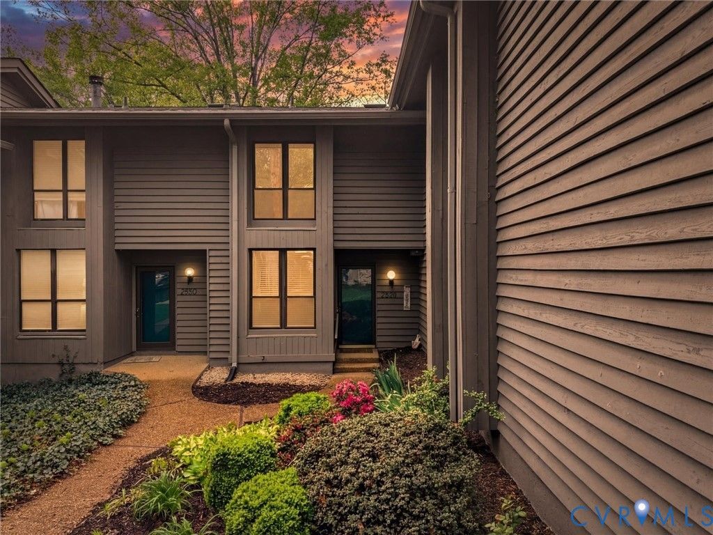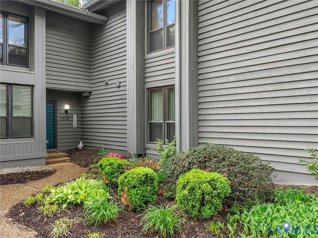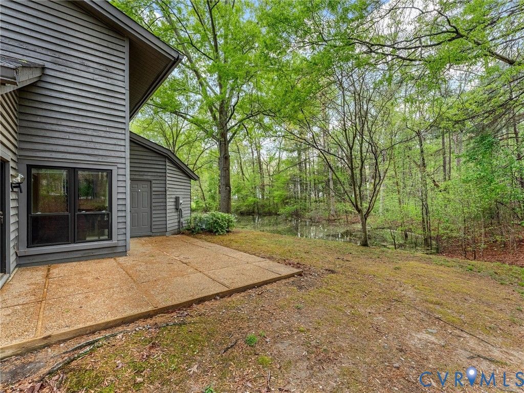 Welcome to 2828 Woodbridge Crossing Ct, a rare 3-bedroom, 2-bath contemporary condo in the desirable Woodbridge Crossing community in the heart of Midlothian. Offering 1,400+ sq ft of thoughtfully designed living space, this two-story home blends comfort, functionality, low-maintenance living and is move-in ready! Step inside to a bright, open layout with soaring ceilings and abundant natural light throughout. The spacious living room features a cozy electric fireplace and direct access to the private rear patio, perfect for relaxing or entertaining this summer. The kitchen is both stylish and functional, complete with Corian countertops, tile backsplash, dual sinks, LED lighting, a charming window seat, and an adjacent dining area. A first floor bedroom with access to a full bath and the patio offers flexible living options, ideal for guests or as a primary suite alternative. Upstairs, the primary suite features vaulted ceilings, a skylight, a spacious closet, and access to the second full bath with a separate vanity/sink area. An additional bedroom also boasts vaulted ceilings and ample storage, making it perfect for a guest room or home office. A convenient second-floor laundry area adds to the home's practicality. Enjoy peaceful outdoor living on the oversized aggregate patio overlooking a tranquil pond, along with an attached storage shed for added convenience. Assigned parking and community managed exterior maintenance provide easy, low-stress ownership. Located in a highly sought-after Midlothian location, this home is just minutes from shopping, dining, and everyday conveniences along Hull Street. Commuters will appreciate quick access to major interstates, while outdoor enthusiasts can enjoy nearby parks, walking trails, and golf courses. Whether you're a first-time buyer, downsizing, or investing, this is an excellent opportunity to own in one of Midlothian's most convenient and established communities.