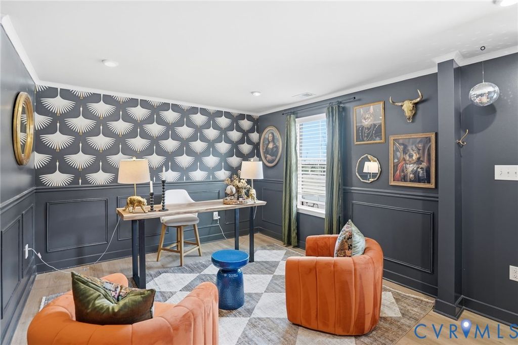 Welcome to 2005 Tobacco Mill St located in Belle Heights, an unbeatable Richmond location. This 3-story townhome features over 1,700 square feet, 3 bedrooms, 2 full baths, 2 half baths, and a two-car rear entry attached garage. Upon entry you will be greeted by the office, which could also be used as a rec room, with LVP flooring, recessed lights, crown molding & wainscoting, a half bath, two closets and access to the attached garage. Ascend to the second level where you will find the main living area with LVP flooring throughout, an open-concept family room that transitions into the dining area and the Gourmet kitchen with quartz counters, stainless steel appliances, gas cooking, large island with seating, custom pendant lights, recessed lights, brick backsplash and the second half bath. On the third level you will find the owner's suite with a tray ceiling, custom trim, walk-in closet plus an en-suite bath with LVP flooring, raised double vanity, and a tiled shower stall with dual shower heads and bench seat. You will also find two additional bedrooms, a hall bath, and the laundry room on the third floor. Enjoy your morning coffee or relax in the evening on your private balcony off the main level. Other notable features include 9 foot ceilings throughout, dimensional roof, brick front, and sidewalks throughout the community. Ideally located close to downtown, dining, breweries, the James River for kayaking, Canoe Run Park, Maymont Park, and major highways. Schedule Your Showing Today!