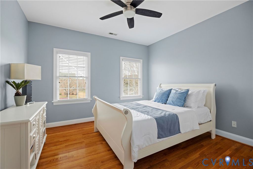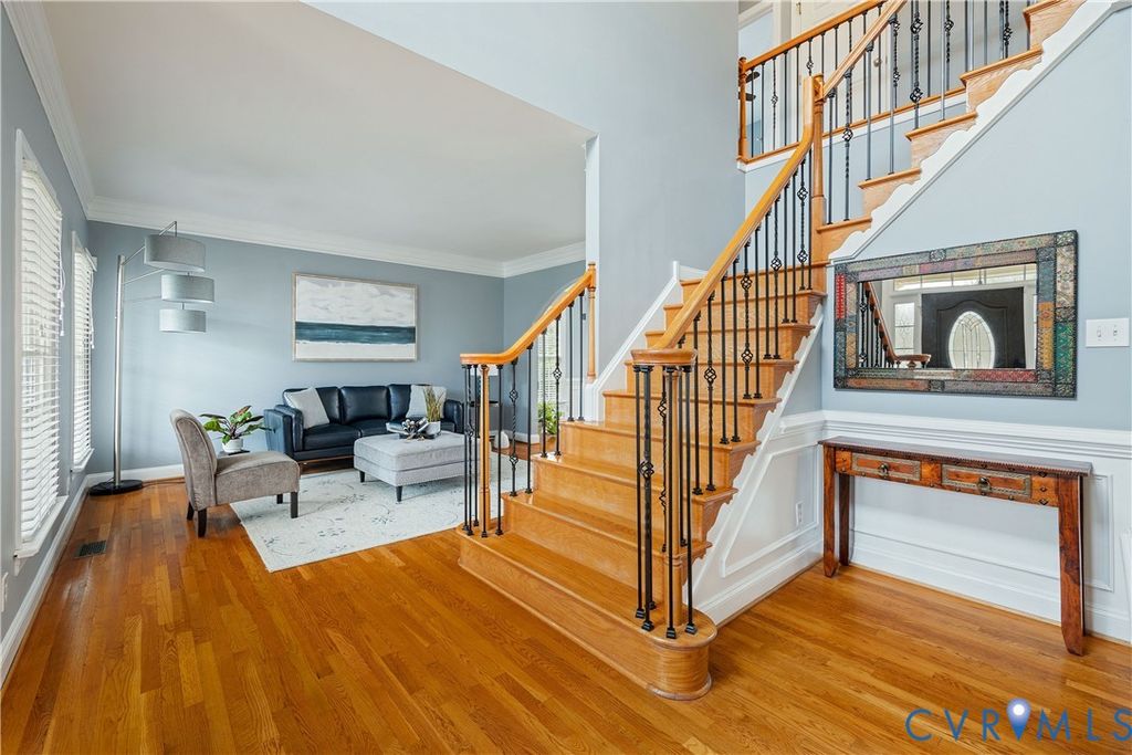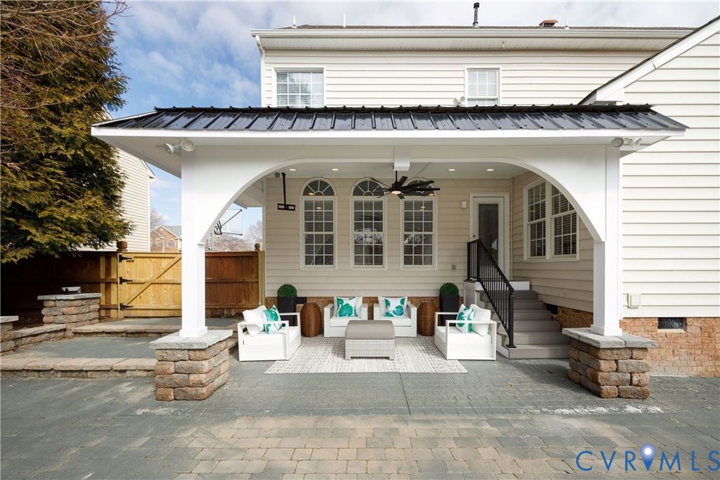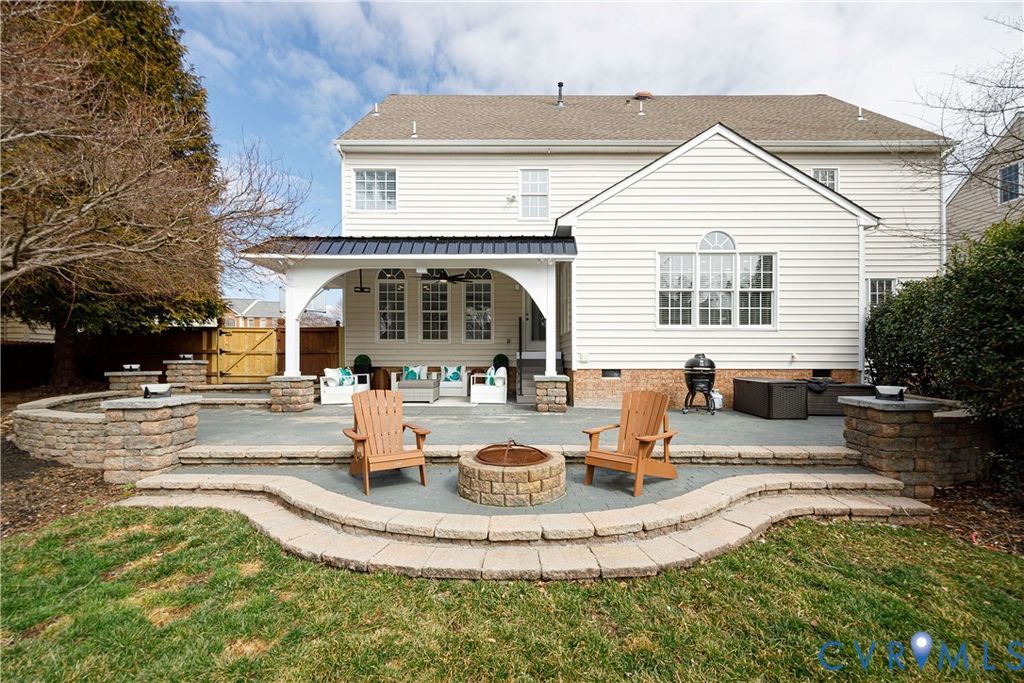 Over $300,000 in upgrades including a brand new 50 year architectural shingle roof (2026) and a 1-year home warranty, this turnkey luxury home offers exceptional space, true chef-caliber kitchen, and resort-style outdoor living, all within walking distance of Deep Run High School. Thoughtfully upgraded and meticulously maintained, this transitional home delivers high-end living without the burden of renovations. The interior features 9-foot ceilings with hardwood floors on the main and upper levels and a dramatic 12-foot ceiling in the morning room creating a bright, open feel. The fully renovated chef's kitchen (2023) includes a pro-grade 48-inch Forno gas range and built- in refrigerator, custom full-height cabinetry, and an imported Italian quartzite waterfall island with full height slab backsplash designed for serious cooking and effortless entertaining. Upstairs offers five generously sized bedrooms including a large primary suite with an expansive walk-in closet. Baths have been tastefully updated with refinished cabinetry and modern finishes (2026). The finished third floor with full bath provides exceptional flex space for a media room, office, gym, or guest suite. The backyard is designed for year-round enjoyment featuring a custom covered pavilion with stone columns, metal roof, hardscaping, and integrated lighting (2026). Key upgrades include main level HVAC with heat tapes for extreme weather (2025), flooring in kitchen and third floor (2023), water heater (2022), permanent programmable exterior holiday lighting (2024), washer/dryer (2019), and a functional garage kitchenette with a Whirlpool microwave and full-size refrigerator (2018). Located in Henrico's sought-after Shady Grove/Short Pump/Deep Run school district, this move-in ready home offers a rare combination of quality, space, and long-term value