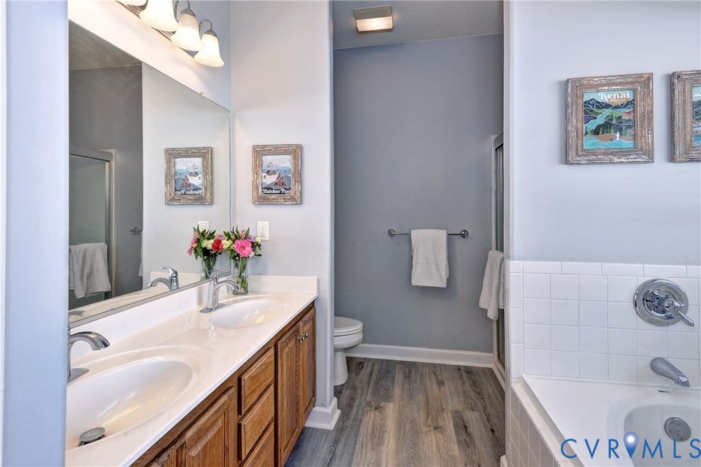 Beautifully maintained, move-in ready ranch in sought-after Wellington! This open-concept home offers a formal dining area overlooking a spacious great room and flows seamlessly to a wraparound deck"”perfect for entertaining. The kitchen features new stainless steel appliances, gas cooking, and a cozy breakfast nook. The primary suite includes a jetted tub, dual vanities, and an updated shower. Two additional first-floor bedrooms share a refreshed full bath with new vanity, fixtures, and lighting. Upstairs, a large bonus room with half bath provides flexible living space. Notable upgrades include 9' ceilings, new carpet, luxury laminate flooring, gas grill hookup, and an electrified storage shed. Community amenities include a pool and playground.