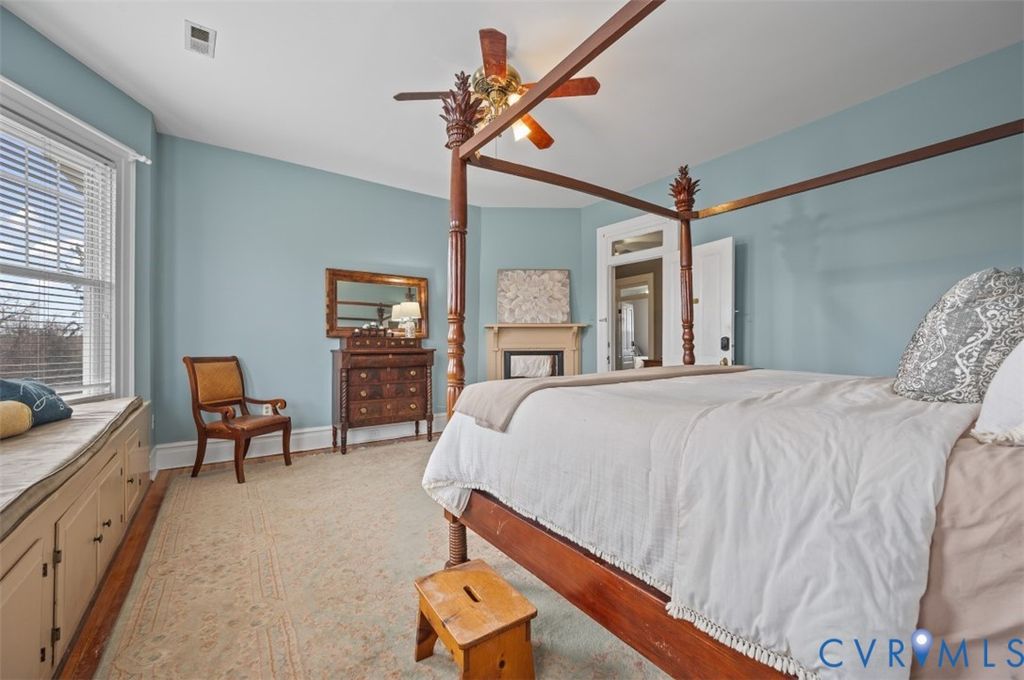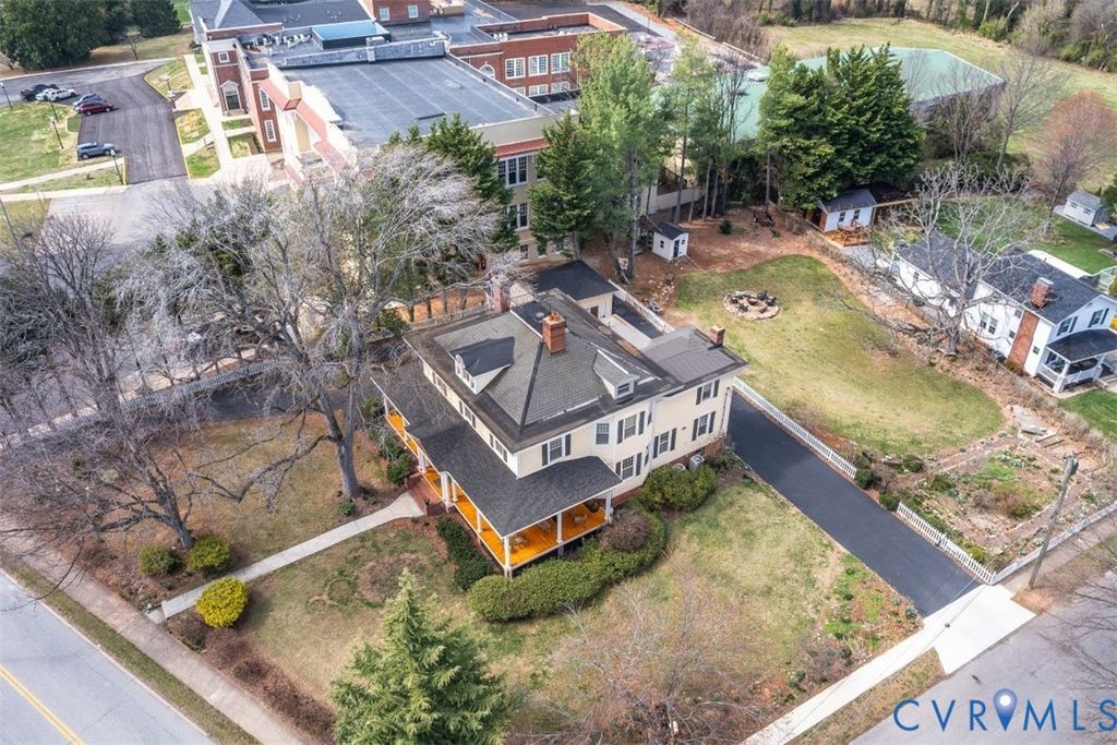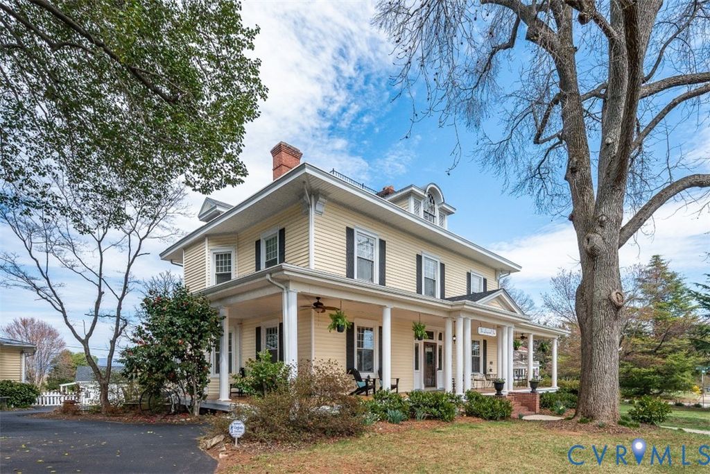 Welcome to The Longwood Inn, a 5 bed, 5.5 bath Colonial Revival in downtown Bedford with mountain views and expansive, sun filled spaces ideal for everyday living or gracious entertaining. A grand foyer leads to living room, oversized mirrored dining room with decorative fireplace, kitchen with granite/stainless & breakfast bar, office/flex dining space, abundant cabinetry, mud room, bath, cozy den with gas fireplace. Main-level primary suite w/full bath. Wood paneled staircase rises to a gracious split landing and well-proportioned bedrooms, including a second primary suite w/ bay window, built-ins, and dual private baths, plus laundry, 3 additional bedrooms,2 full baths. Walk up attic, sitting porch, 8 ornate mantels, 3 pocket door sets, and multiple fireplaces. Park-like setting-beautiful gardens. Covered front porch, garage, deck. Walk to downtown. Perfect as a boutique B&B or single family home, blending character, history, and versatility. Detached garage/Workshop. Very short walk to historic downtown Bedford, restaurants, library, shopping and on The Loop.'' Vinyl Siding, insulated windows, new porch roof, new porch floors, new rear deck, 3 sets of full pocket doors, several single pocket doors, 8 fireplaces/mantles, 3 gas logs, one working wood burning fireplace, laundry room moved upstairs, propane tank is leased (Watts). Paved circular drive, full covered front & porches (great for entertaining). This home will appeal to many buyers-single family, boutique inn, wedding/event venue, hybrid property (residence plus income producing rooms). This home has so much to offer plus so much history!