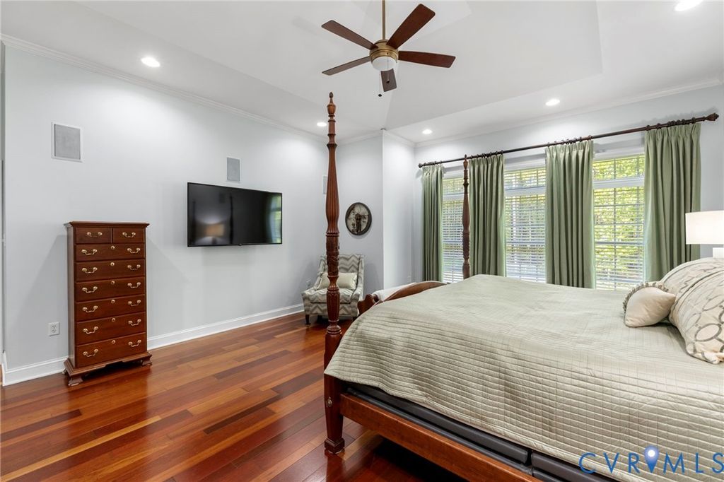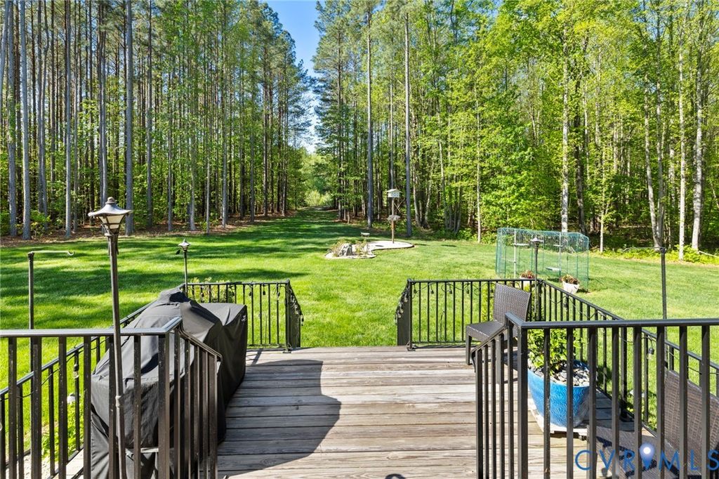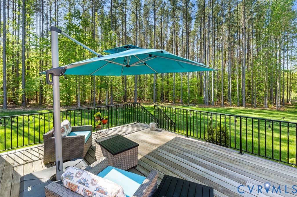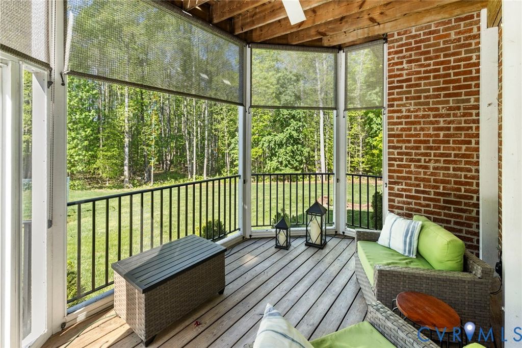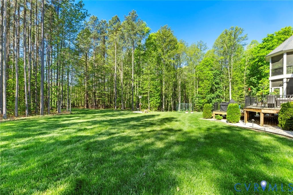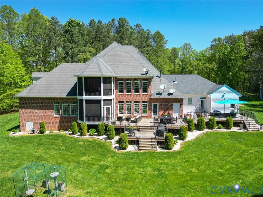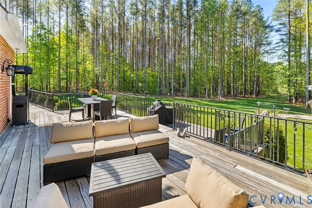 Tucked behind stately brick pillars on over 6 private, wooded acres, this magnificent all-brick multi-generational estate offers a rare combination of seclusion and convenience, just minutes from Short Pump. From the moment you arrive, low-level landscape lighting lining the driveway and surrounding the home creates an atmosphere of effortless elegance, day or night. Come inside to find over 6,300 square feet of beautifully appointed living space, where Brazilian cherry hardwoods, soaring ceilings, and three gas fireplaces create a warm, sophisticated atmosphere throughout. The heart of the home is a fully renovated chef's kitchen featuring all-new appliances, rich granite countertops, a new gas range, a wine refrigerator, and a walk-in pantry"”a true entertainer's dream. The dramatic two-story family room with built-in bookcases opens to an expanded deck and screened porch complete with new blinds, perfect for enjoying the serene, wooded views year-round. The main-floor primary suite is a private sanctuary with tray ceilings, dual walk-in closets, and a spacious spa-like bath. A graceful curved staircase"”now finished with rich hardwood on both the staircase and upper landing"”leads to four generously sized bedrooms upstairs, each with new carpeting, plus two full baths (including one renovated bath) and a second screened porch overlooking the lush grounds. A thoughtfully designed private guest suite on the main level offers complete independence with its own living room, renovated kitchenette, two additional rooms, full bath, separate entrance, and personal patio"”ideal for extended stays, guests, office space or craft rooms. With a three-car garage, walk-in attic, and a long list of quality updates across every level, this is a rare opportunity to own a truly move-in ready estate that combines timeless character with the comfort and style of a newly refreshed home. Welcome home!