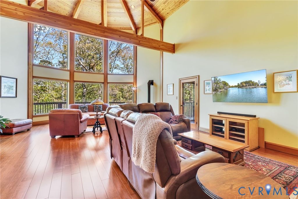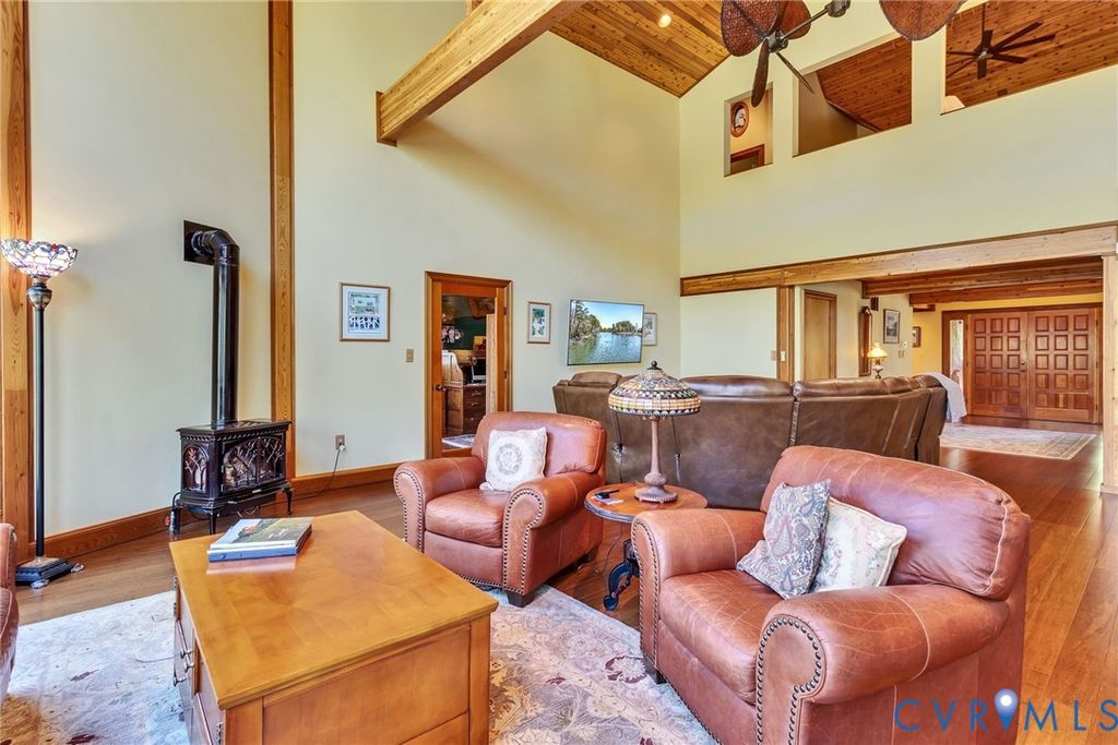 Gorgeous Lindal Cedar home tucked along protected Rock Hole Creek, just off the Little Wicomico. Enjoy excellent boating from your own backyard with a private pier featuring approximately 5' MLW & a boat lift, plus easy access for kayaking & waterfront fun. This custom-designed home is truly special, showcasing dramatic cedar-lined ceilings, varied ceiling height, & soaring 2-story walls of glass that fill the home with natural light & beautiful views. The spacious living room offers an open & inviting layout with multiple sitting areas, a gas stove, & plenty of room for entertaining. The gourmet kitchen is a chef's delight - a large center island with seating, a separate bar area, abundant cabinetry & storage, & high-end Wolf & Sub-Zero appliances. A formal dining area with a 2-story ceiling adds to the home's impressive design & includes a storage closet. The 1st-floor primary suite is beautifully positioned on the waterfront & features a private bath with a jetted tub, tiled shower, & an oversized walk-in closet. A waterfront office, accessible from both the living room & the primary suite, opens to the deck, making it easy to go from work to water. Upstairs, a loft-style landing overlooks the living room & leads to 2 nicely sized guest bedrooms & a full bath with an oversized walk-in tiled shower. Outdoor living is just as inviting with a large wraparound waterfront deck perfect for relaxing or entertaining. The property also includes an attached 3-bay garage, a large generator, a detached shed, & 2+ acres. This is a one-of-a-kind waterfront retreat!