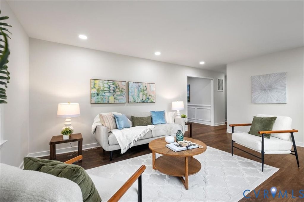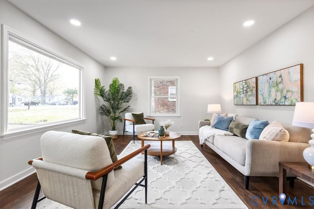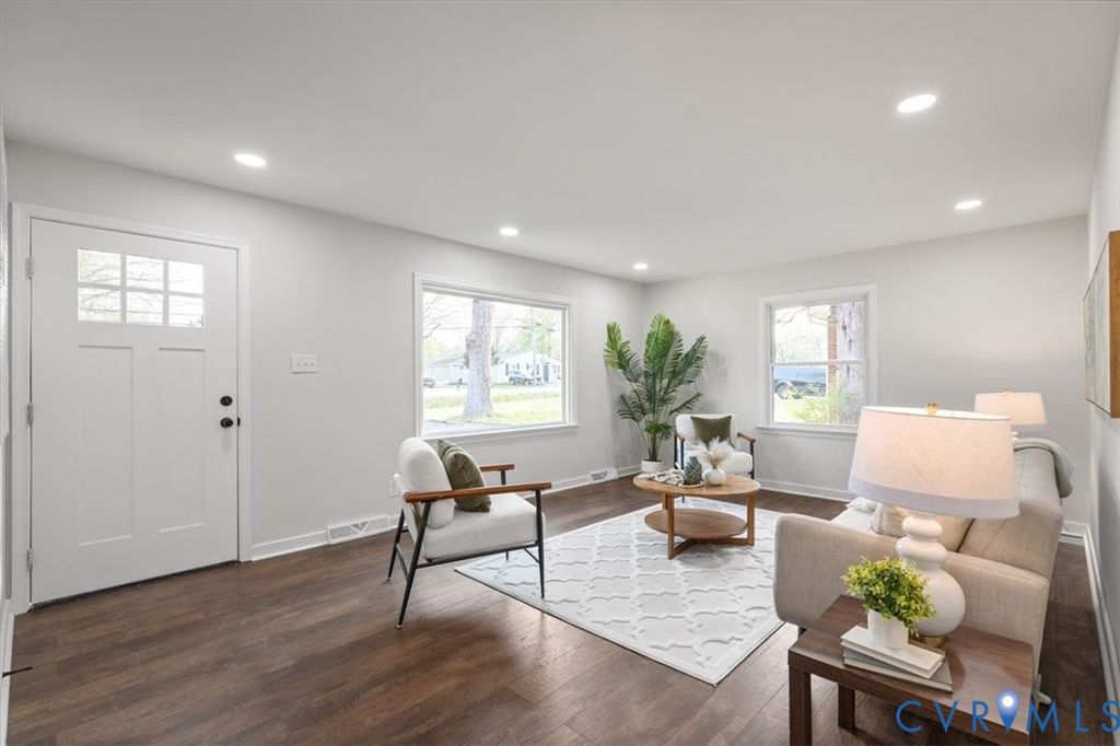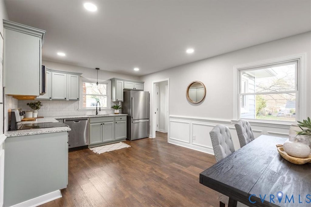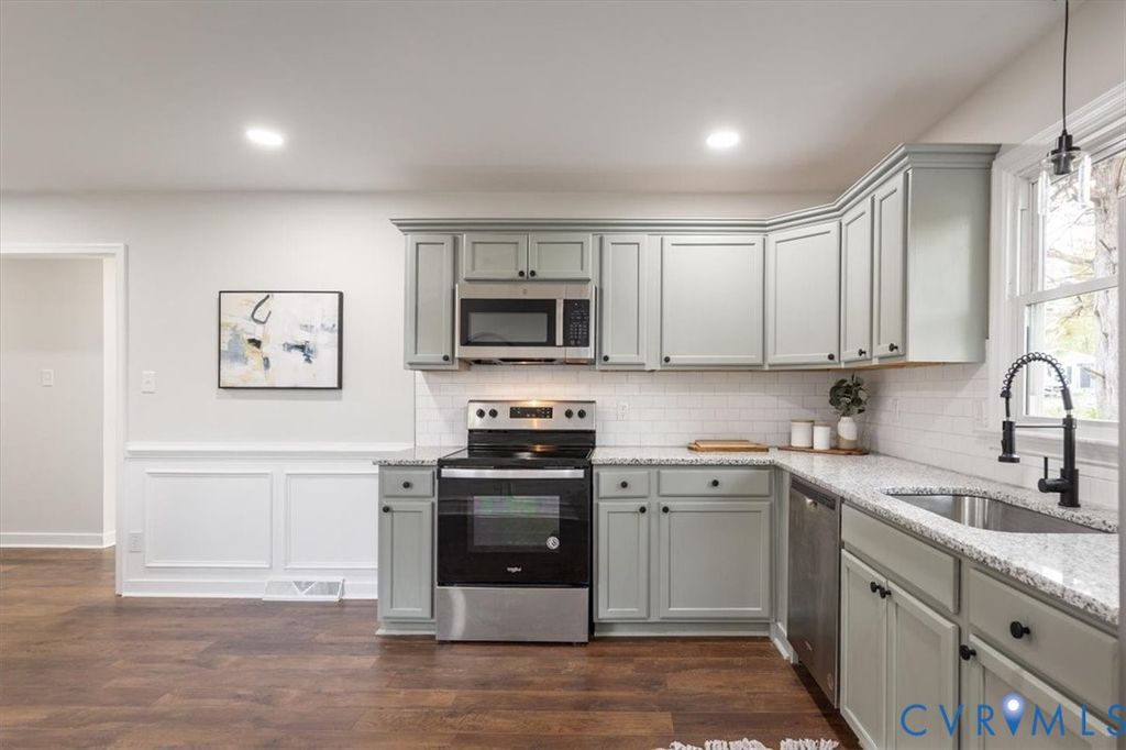 Charming renovated ranch in North Chesterfield with 3 bedrooms and 1 1/2 bathrooms. The large family room has plenty of natural light with a large picture frame window, fresh paint, recessed lights, and laminate floors. The dining room and kitchen are open with plenty of recessed lights, new laminate flooring, chair rail and picture frame moulding. The kitchen has be redesigned with new cabinets, granite tops, ceramic backsplash, and stainless appliances. The primary bedroom has new carpet and direct access to the full bath with ceramic tile floor and shower and new double bowl vanity. The other 2 bedrooms have fresh paint and new carpet. The separate 1/2 bath has been updated with new fixtures and is next to the spacious laundry room. The entire crawlspace has been redone by The Drying Company including new insulation and vapor barrier. This move in ready home will not last long!