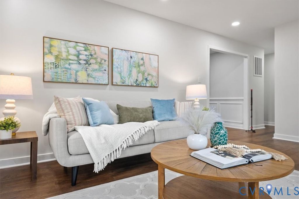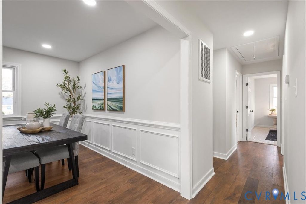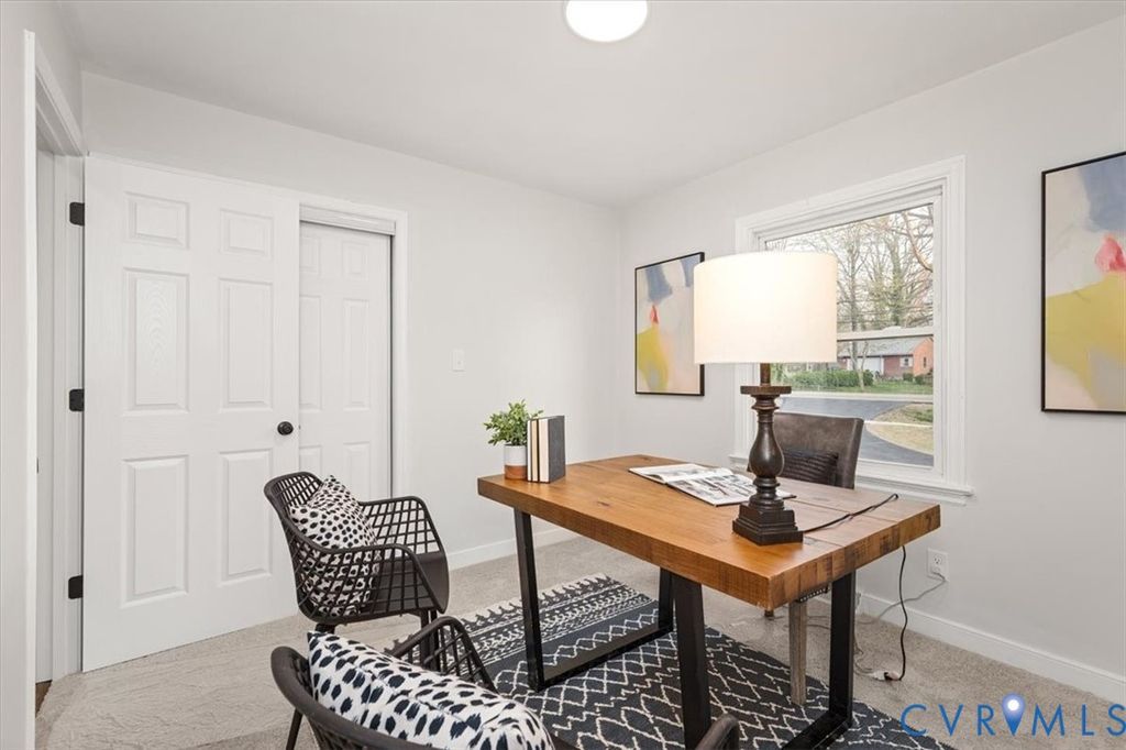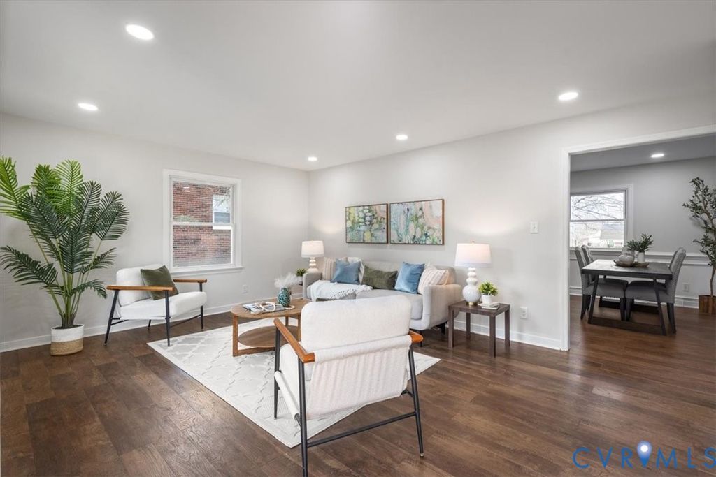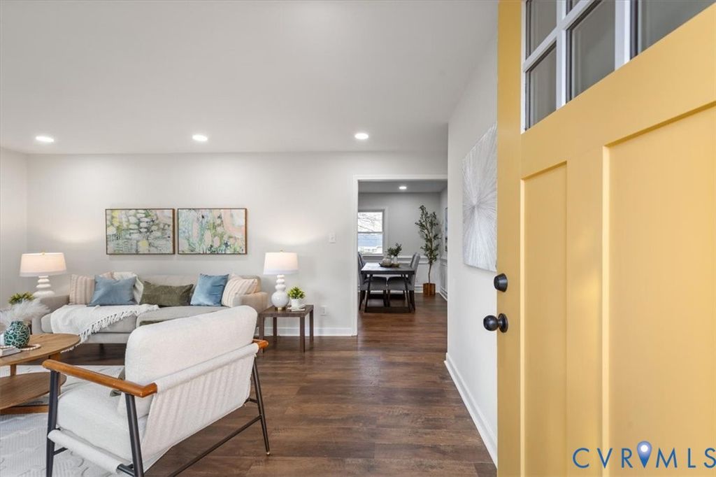 Charming renovated ranch in North Chesterfield with 3 bedrooms and 1 1/2 bathrooms. The large family room has plenty of natural light with a large picture frame window, fresh paint, recessed lights, and laminate floors. The dining room and kitchen are open with plenty of recessed lights, new laminate flooring, chair rail and picture frame moulding. The kitchen has be redesigned with new cabinets, granite tops, ceramic backsplash, and stainless appliances. The primary bedroom has new carpet and direct access to the full bath with ceramic tile floor and shower and new double bowl vanity. The other 2 bedrooms have fresh paint and new carpet. The separate 1/2 bath has been updated with new fixtures and is next to the spacious laundry room. The entire crawlspace has been redone by The Drying Company including new insulation and vapor barrier. This move in ready home will not last long!