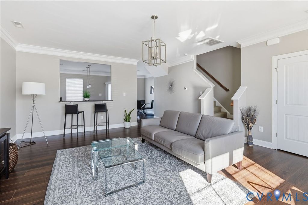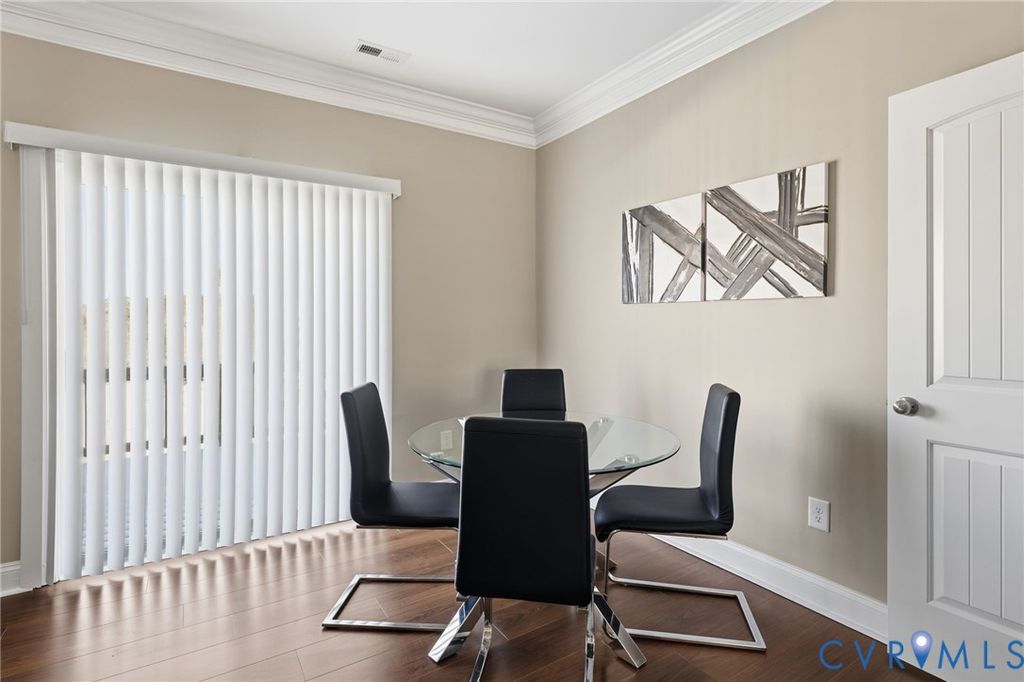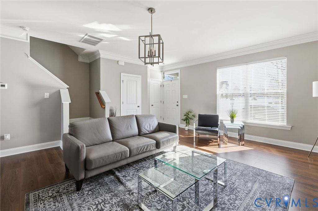 Beautifully maintained 3-bedroom townhome with 2 full and 2 half baths in the sought-after Wynwood section of Foxcreek, ideally located between Magnolia Green and Woodlake off Otterdale Road. This two-level home with a finished basement offers hardwood floors, a bright kitchen with white cabinetry, Whirlpool appliances, electric cooking, and crown molding throughout the kitchen and living areas. All appliances and mini blinds convey, and the tankless water heater adds modern efficiency. Enjoy peaceful pond views with a fountain and gazebo directly across the street, along with resort-style community amenities including indoor and outdoor pools, fitness center, splash park, and tennis courts. Just minutes from Publix and the ever growing shops and dining along West Hull Street "” this home blends comfort, convenience, and lifestyle living.