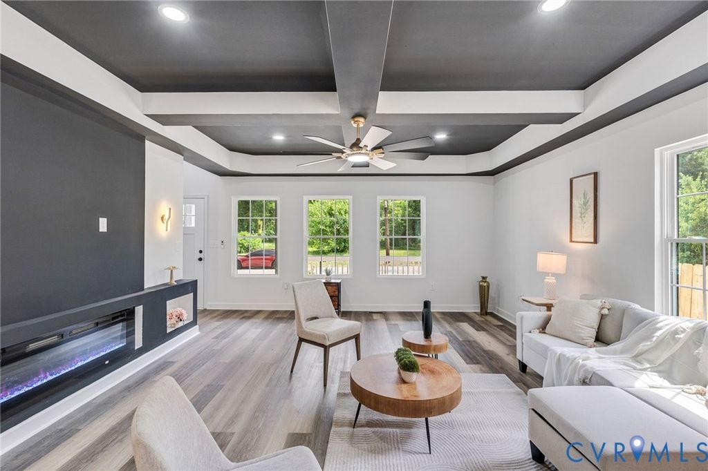 QUALIFIED BUYERS MAY HAVE ACCESS TO UP TO $50,000 IN DOWN PAYMENT ASSISTANCE THROUGH PETERSBURG PROGRAMS. Welcome to this stunning new construction home offering 4 bedrooms and 3.5 bathrooms, thoughtfully designed with modern finishes and a highly desirable layout perfect for today's lifestyle. This beautiful residence features two primary suites"”one conveniently located on the first floor and another on the second level"”providing ideal flexibility for multi-generational living or guest accommodations. Step inside to a bright and airy open-concept living space highlighted by luxury vinyl plank flooring, recessed lighting, and an eye-catching coffered/tray ceiling with a modern ceiling fan. The living room showcases a sleek electric fireplace, creating a warm and elegant focal point. The gourmet kitchen is a true showstopper, featuring: Quartz countertops A spacious center island with seating Custom white cabinetry with gold hardware Stylish backsplash and modern pendant lighting Stainless steel appliances Retreat to the beautifully designed bathrooms, where you'll find spa-inspired finishes, including custom tiled showers, glass enclosures, and elegant vanities with designer fixtures. The primary bath offers a luxurious walk-in shower with a niche and upscale detailing. Additional highlights include: Spacious bedrooms with abundant natural light Thoughtfully designed layout with excellent flow Dedicated dining area perfect for entertaining Covered front porch ideal for relaxing Private driveway and newly finished exterior Energy-efficient systems and brand-new construction peace of mind Located in a convenient area close to major highways, shopping, and dining, this home perfectly blends style, comfort, and functionality. Don't miss this exceptional opportunity"”schedule your private showing today!
